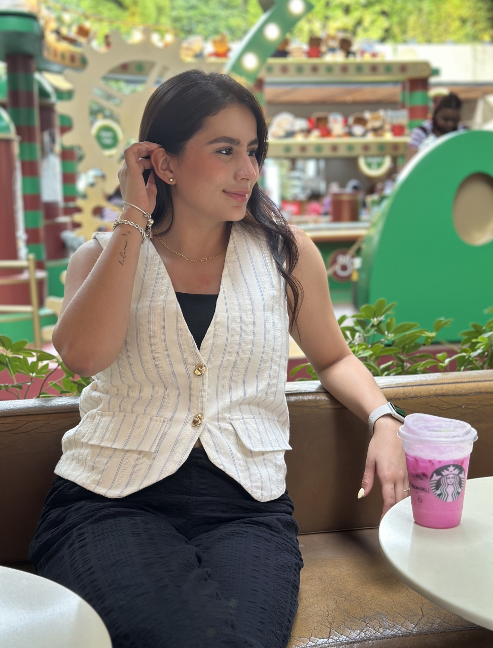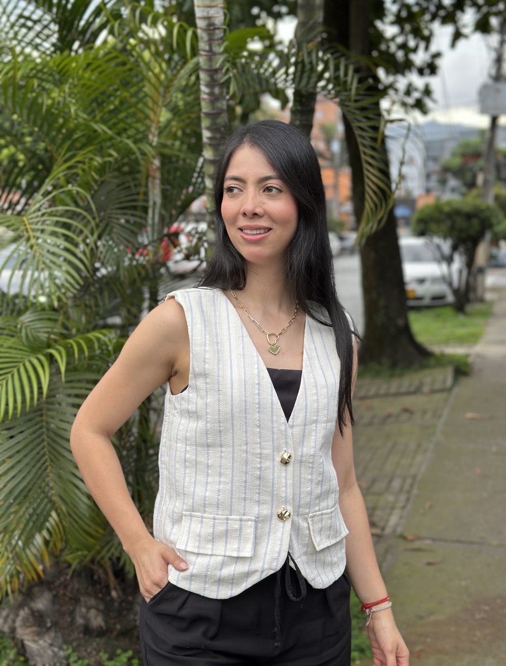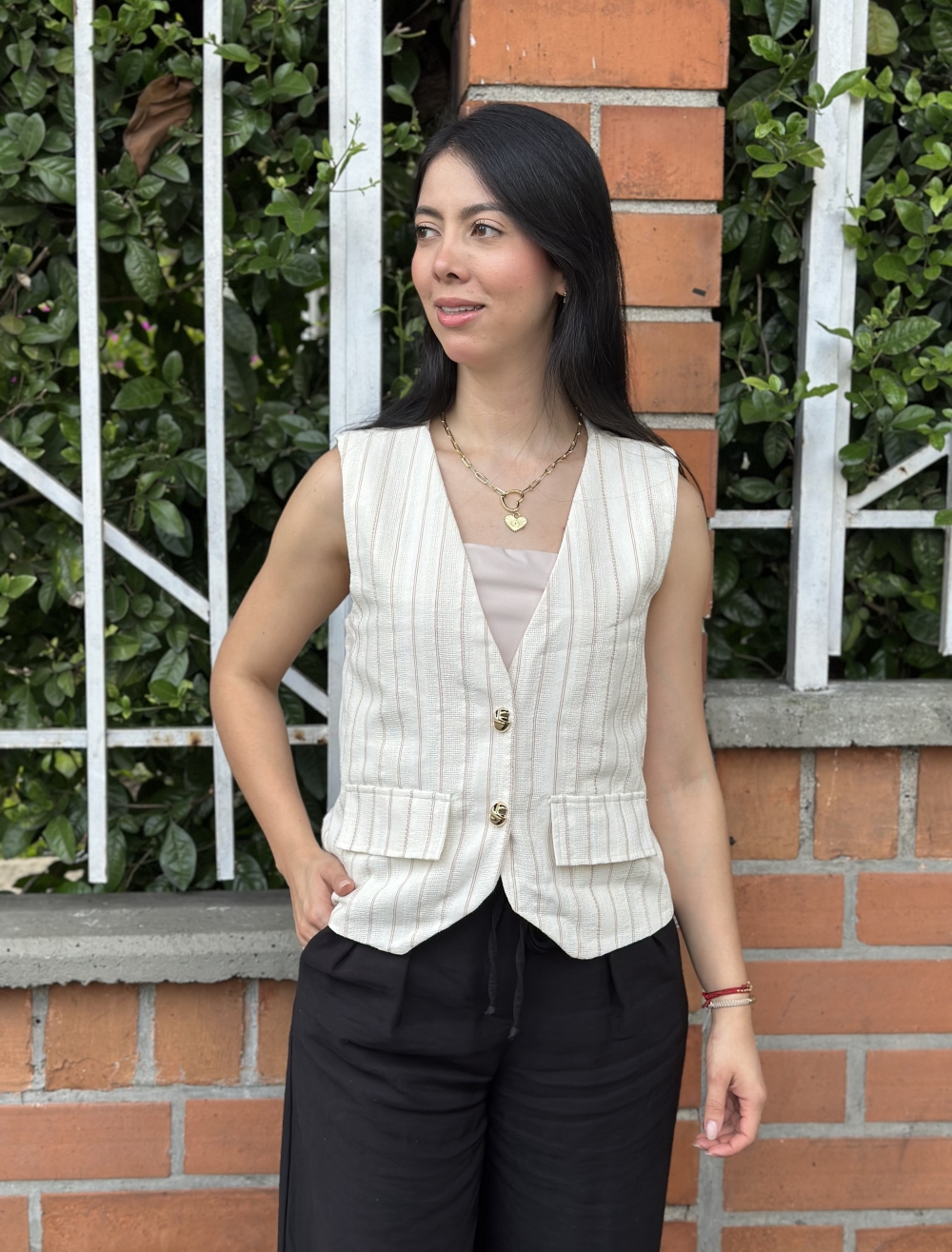 Chaleco en tela tipo tejida gruesa con detalles de líneas